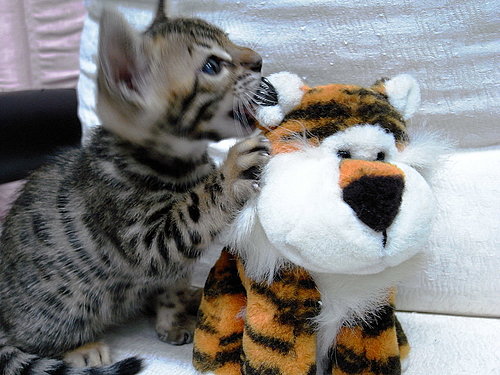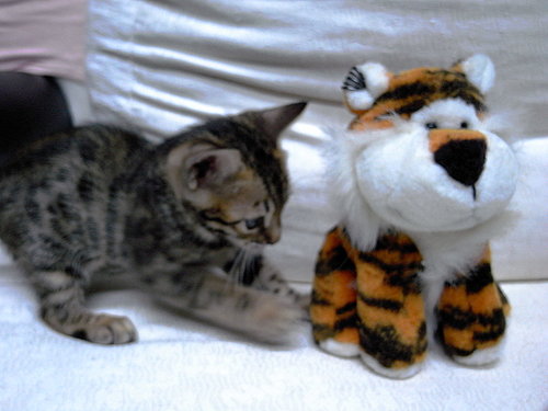 前幾天晚上在樓上看電視,順便陪小豹貓們玩耍,